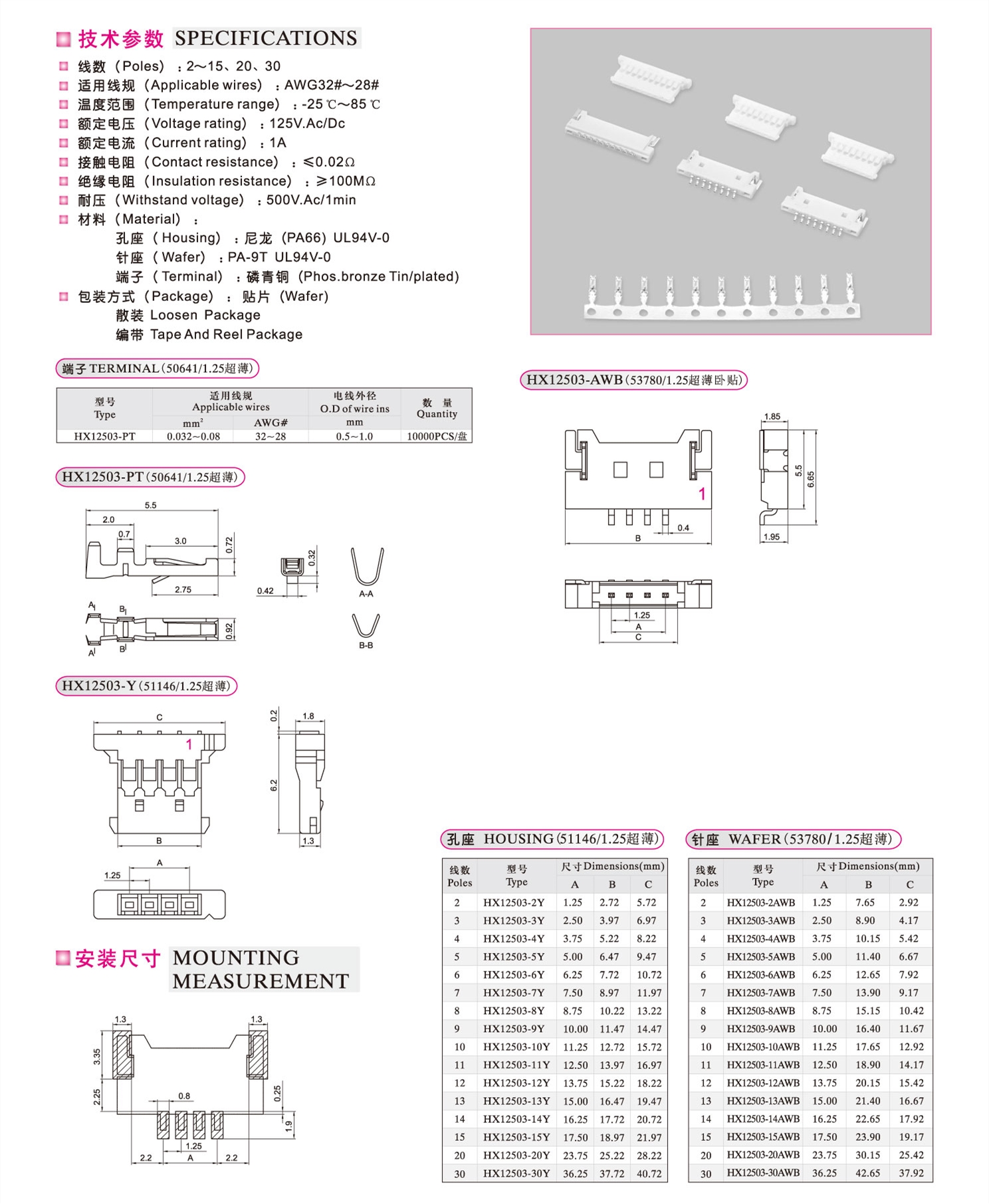 密云HX12503-(1.25超薄 SMT/51146、53780)- 贴片式连接器(1.25mm)